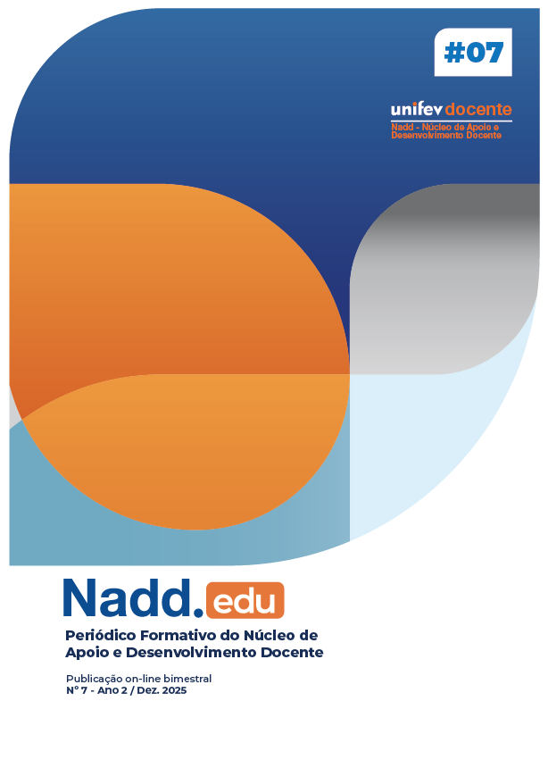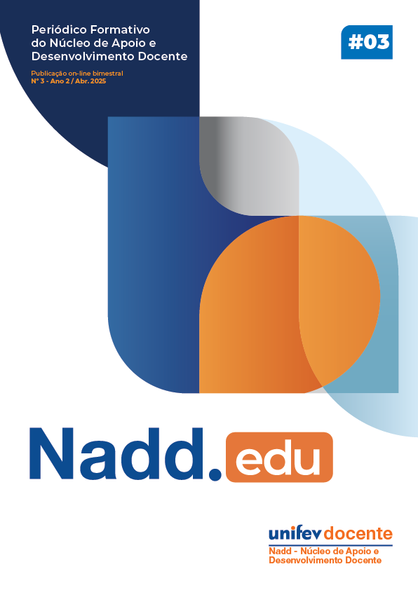 n. 7 (2025)O Nadd.edu é uma publicação on-line bimestral vinculada ao Núcleo de Apoio e Desenvolvimento Docente da Unifev. O periódico propõe-se a abrir um espaço de fomento à educação permanente e à reflexão pedagógica. Sua missão é apoiar o aprimoramento da prática docente no ensino superior, difundindo saberes, metodologias ativas e inovações educacionais. Para tanto, divulga, em formato eletrônico, artigos, análises científicas, relatos de práticas docentes e debates sobre o contexto acadêmico. É um material voltado, primordialmente, aos professores e profissionais da educação, visando fortalecer o processo de ensino-aprendizagem e a identidade profissional docente.