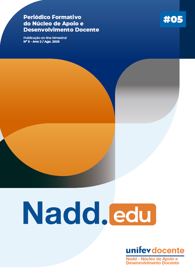 n. 5 (2025)O Nadd.edu é uma publicação on-line bimestral vinculada ao Núcleo de Apoio e Desenvolvimento Docente da Unifev. O periódico propõe-se a abrir um espaço de fomento à educação permanente e à reflexão pedagógica. Sua missão é apoiar o aprimoramento da prática docente no ensino superior, difundindo saberes, metodologias ativas e inovações educacionais. Para tanto, divulga, em formato eletrônico, artigos, análises científicas, relatos de práticas docentes e debates sobre o contexto acadêmico. É um material voltado, primordialmente, aos professores e profissionais da educação, visando fortalecer o processo de ensino-aprendizagem e a identidade profissional docente.