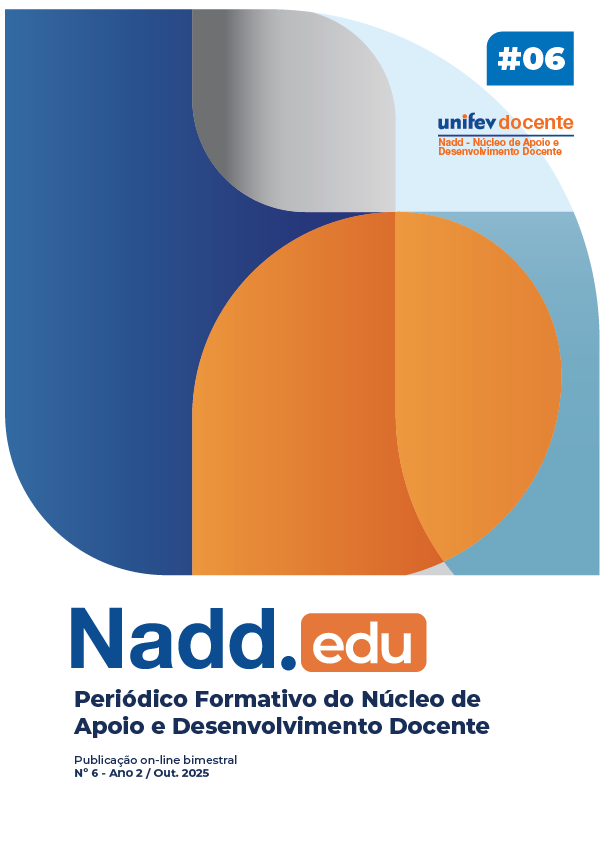 n. 6 (2025)O Nadd.edu é uma publicação on-line bimestral vinculada ao Núcleo de Apoio e Desenvolvimento Docente da Unifev. O periódico propõe-se a abrir um espaço de fomento à educação permanente e à reflexão pedagógica. Sua missão é apoiar o aprimoramento da prática docente no ensino superior, difundindo saberes, metodologias ativas e inovações educacionais. Para tanto, divulga, em formato eletrônico, artigos, análises científicas, relatos de práticas docentes e debates sobre o contexto acadêmico. É um material voltado, primordialmente, aos professores e profissionais da educação, visando fortalecer o processo de ensino-aprendizagem e a identidade profissional docente.